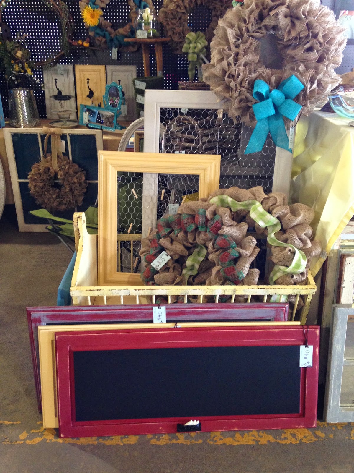 Mom has been busy helping us get ready - she is a master wreath maker and the best babysitter of all time! We also have our cars loaded with handcrafted potting benches, a beautiful antique trunk, and other treasures. This is just one of many chalkboard cabinets that we have ready to go...